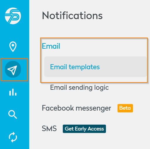 To create a new email template, navigate to Email Design Templates. You can find this page under Customer Notifications in the left sidebar menu of the Touchpoints section.