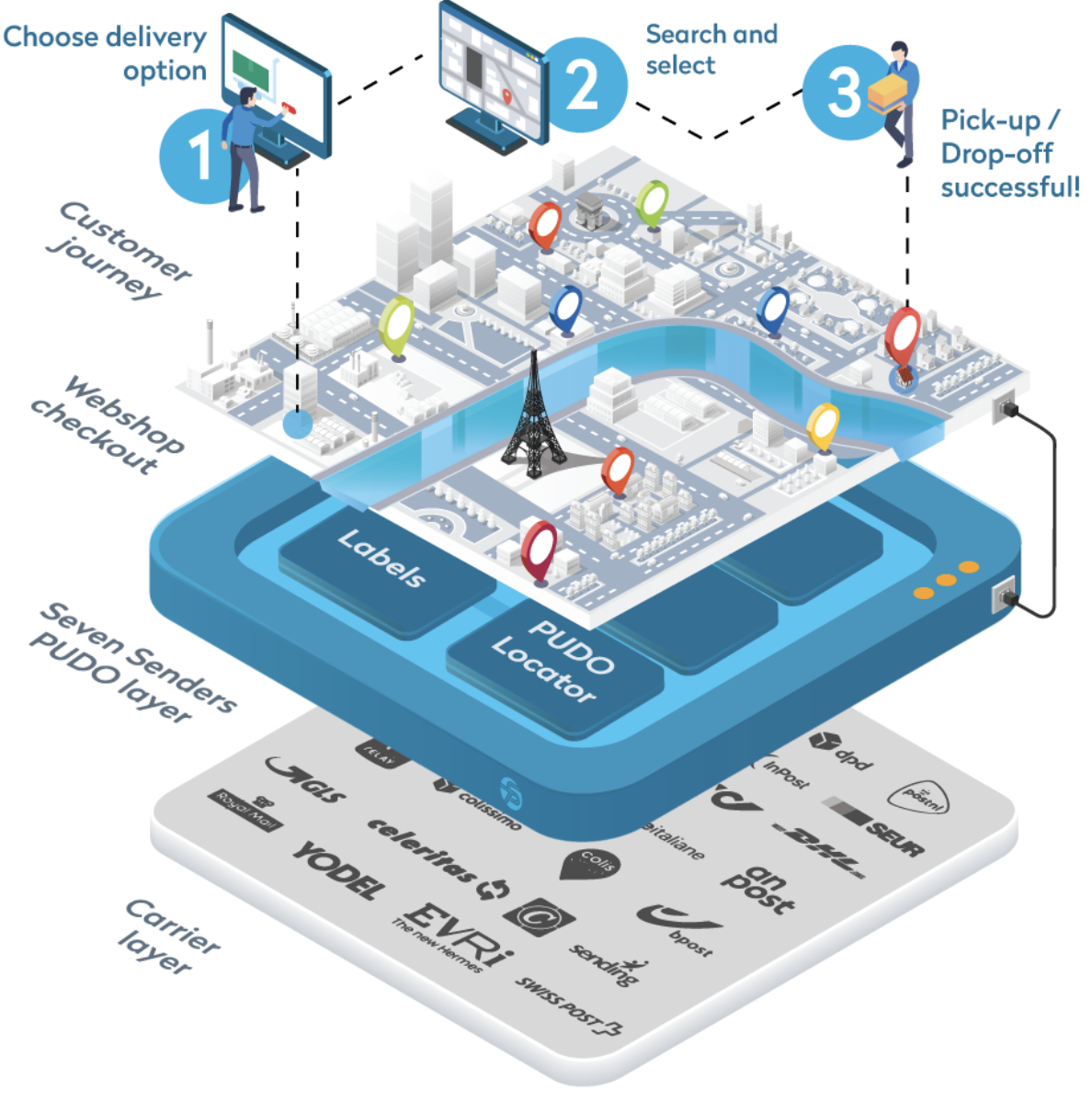 The 7S PUDO Locator enables merchant to access out-of-home delivery locations across our carrier network through a single, standardized API integration. Instead of integrating individually with each carrier’s PUDO endpoint, merchants connect once and gain scalable access to a continuously maintained and harmonized location database.